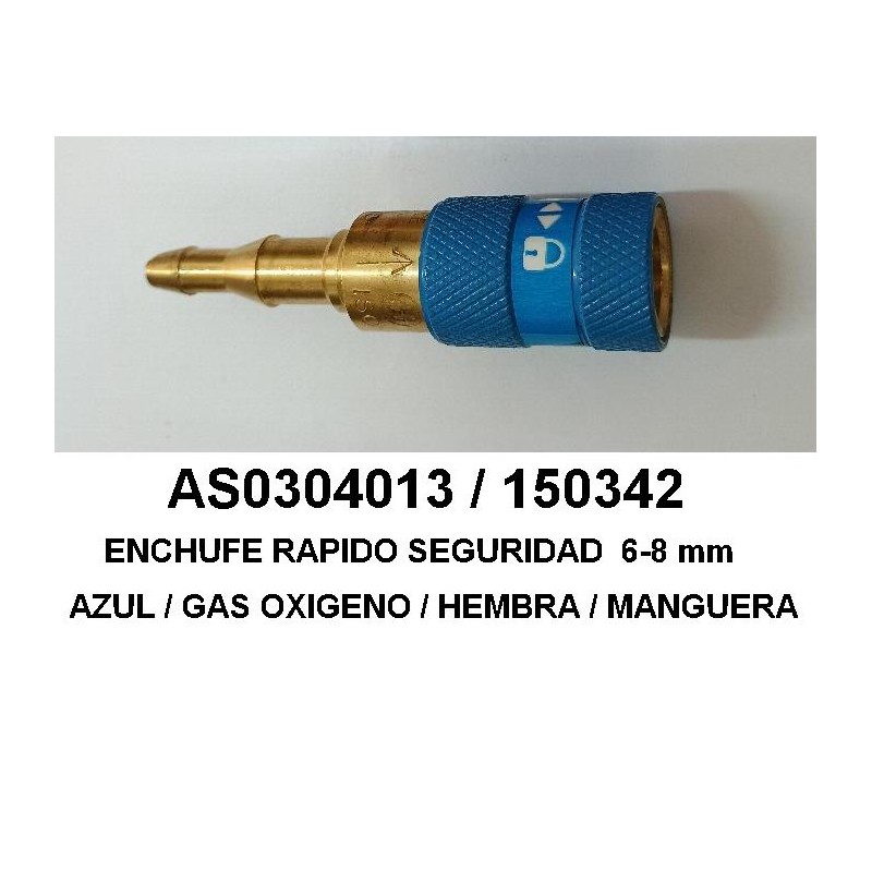 ENCHUFE RAPIDO SEGURIDAD 6/8 GOMA OXIGENO AZUL CON BLOQUEO I.V.A. NO INCLUIDO Y TRANSPORTE EN PENINSULA BAJO CONSULTA CONCERTADO 18 € HASTA 25 Kg. PEDIDOS a javc@gasymaq.com y Movil 645838177 + WahtsAppRecipiente :