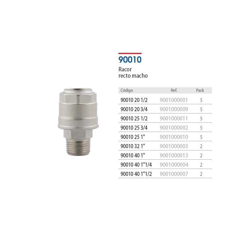 90010-25 Racor recto macho 1/2 Pak. 5 Un. x Un,
